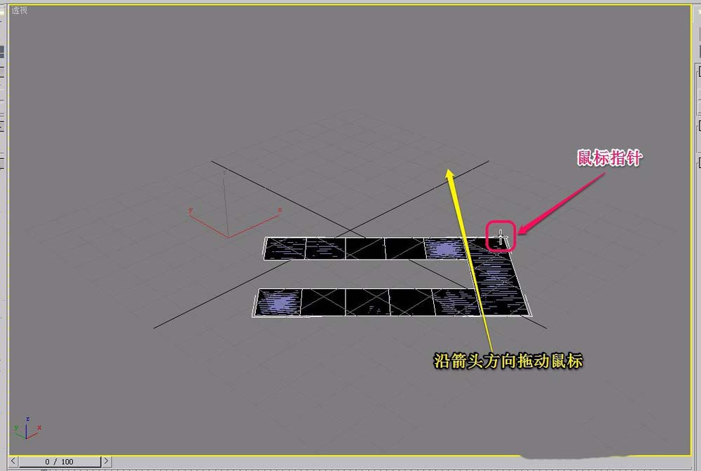 7、繼續沿著黃色箭頭方向拖動鼠標,創建出樓梯的寬度。