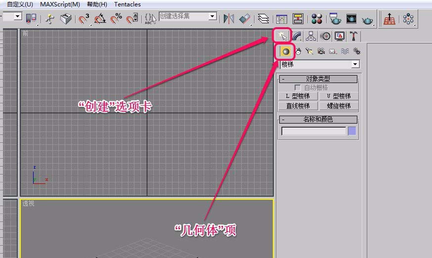 2、打開“創建”選項卡,選擇“幾何體”項。