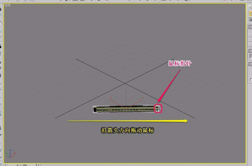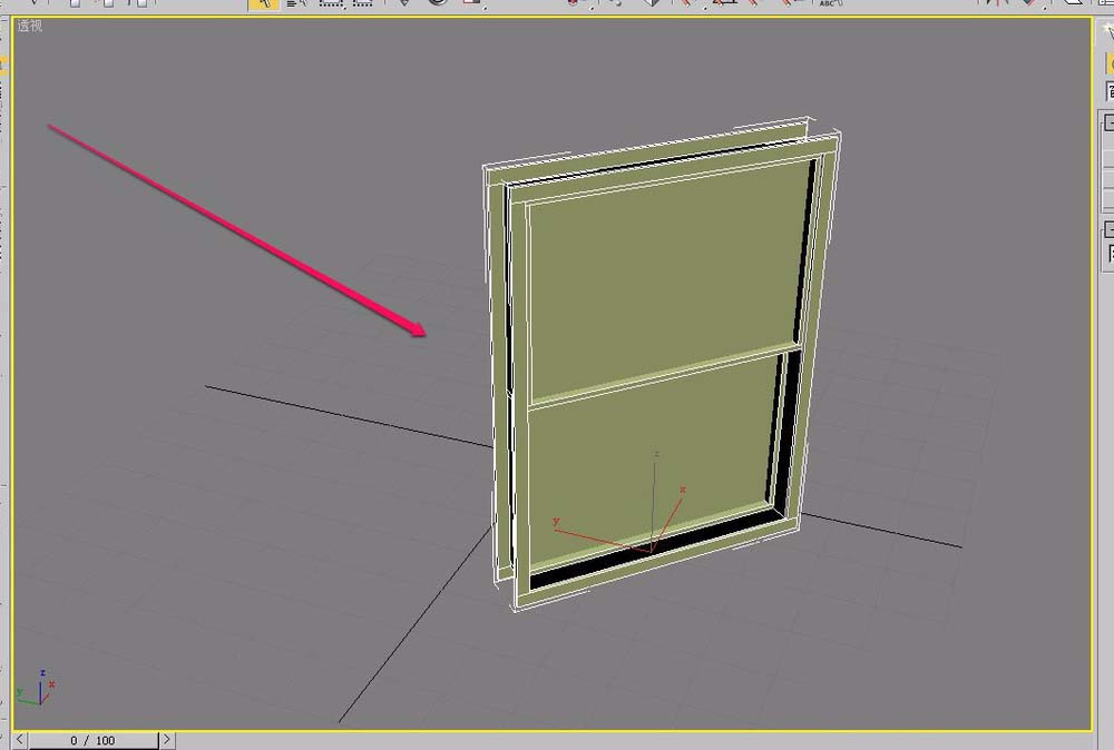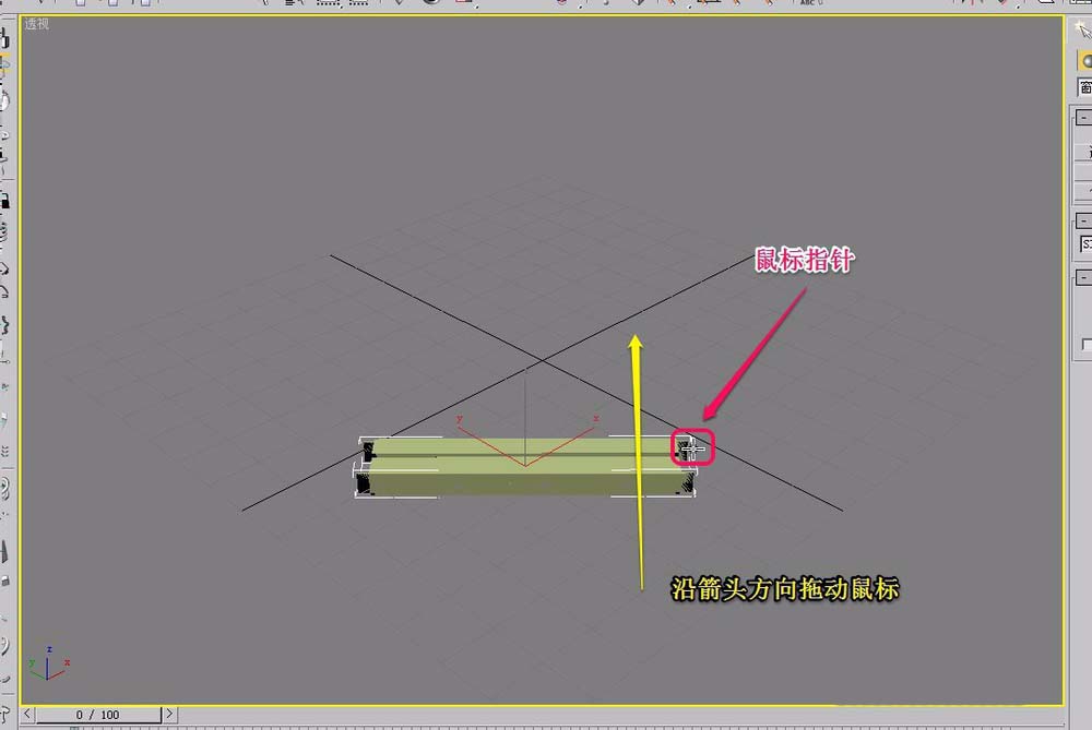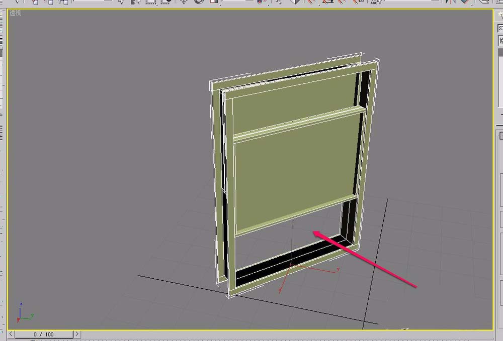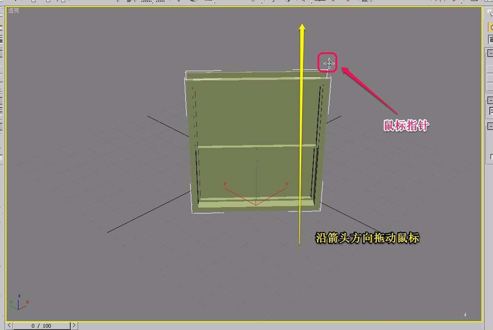 7、沿著黃色箭頭方向繼續拖動鼠標,創建出推拉窗的深度(厚度)。