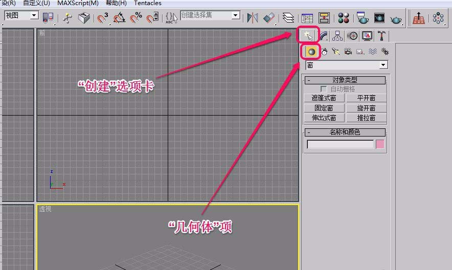 2、打開“創建”選項卡,選擇“幾何體”項。