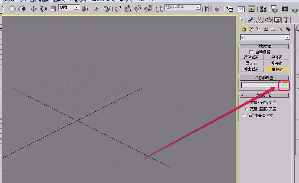 4、打開“名稱和顏色”卷展欄,為推拉窗選擇一種顏色。
