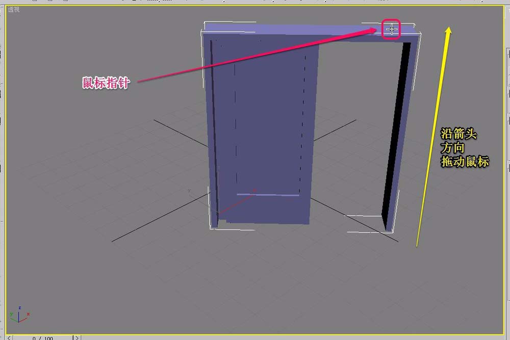 8、沿著黃色箭頭的方向繼續拖動鼠標,創建出推拉門的高度。
