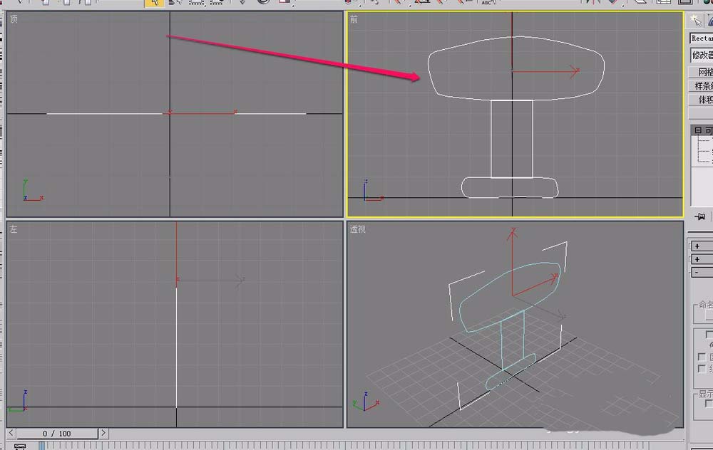 2、我們?cè)?ldquo;前”視圖中繪制一個(gè)如圖所示的鐵軌截面,并選中截面。
