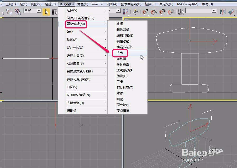 4、選擇“網(wǎng)格編輯”項(xiàng)中的“擠出”命令。