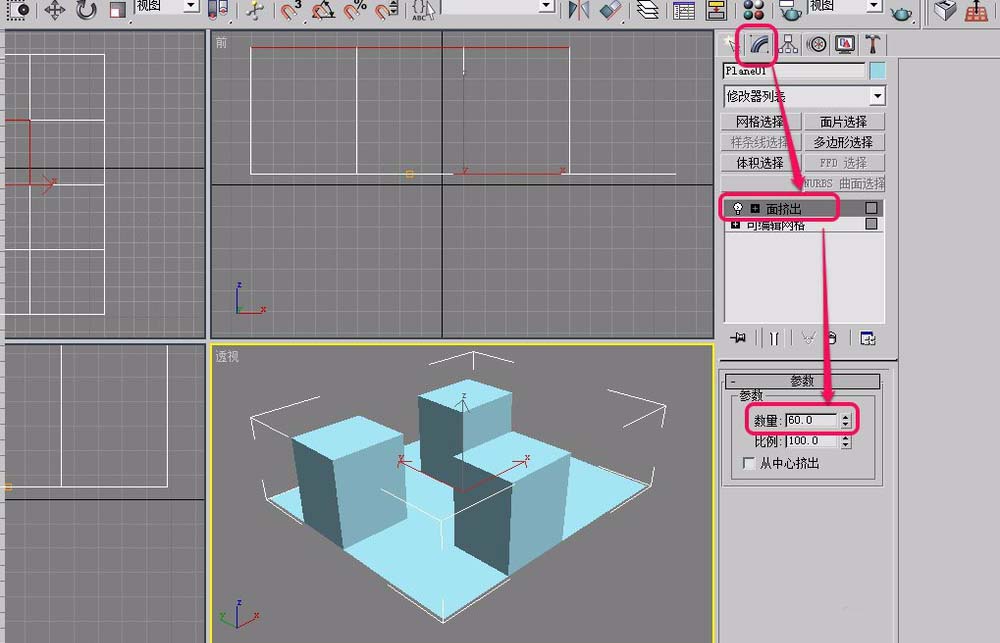 3dsmax2014怎么使用擠出工具?