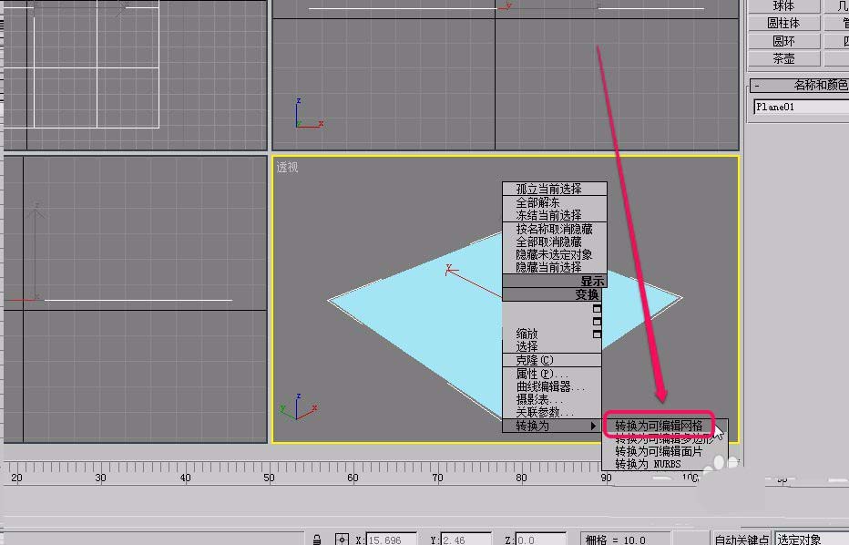2、在平面上單擊鼠標右鍵,選擇菜單中的“轉換為可編輯網格”命令。