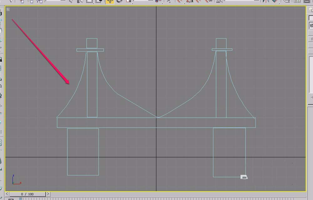 6、在“前”視圖中完整地繪制出吊橋的橫截面。