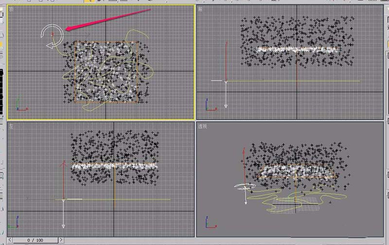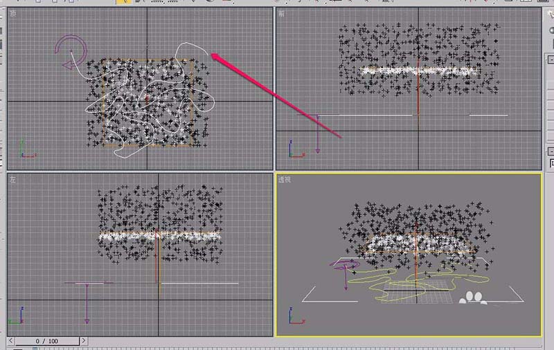 6、在視圖中繪制一條曲線作為“漩渦”發射器的運動路徑。