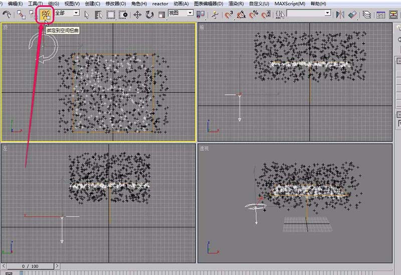 3、選擇工具欄中的“綁定到空間扭曲”按鈕。