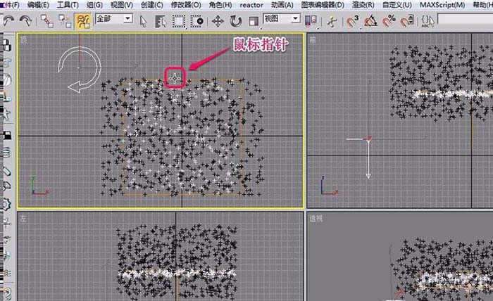 5、按住鼠標鍵向“漩渦”發射器移動,當鼠標指針變成圖示的形狀時,單擊鼠標鍵。這時,“暴風雪”發射器就綁定到了“漩渦”發射器上面。