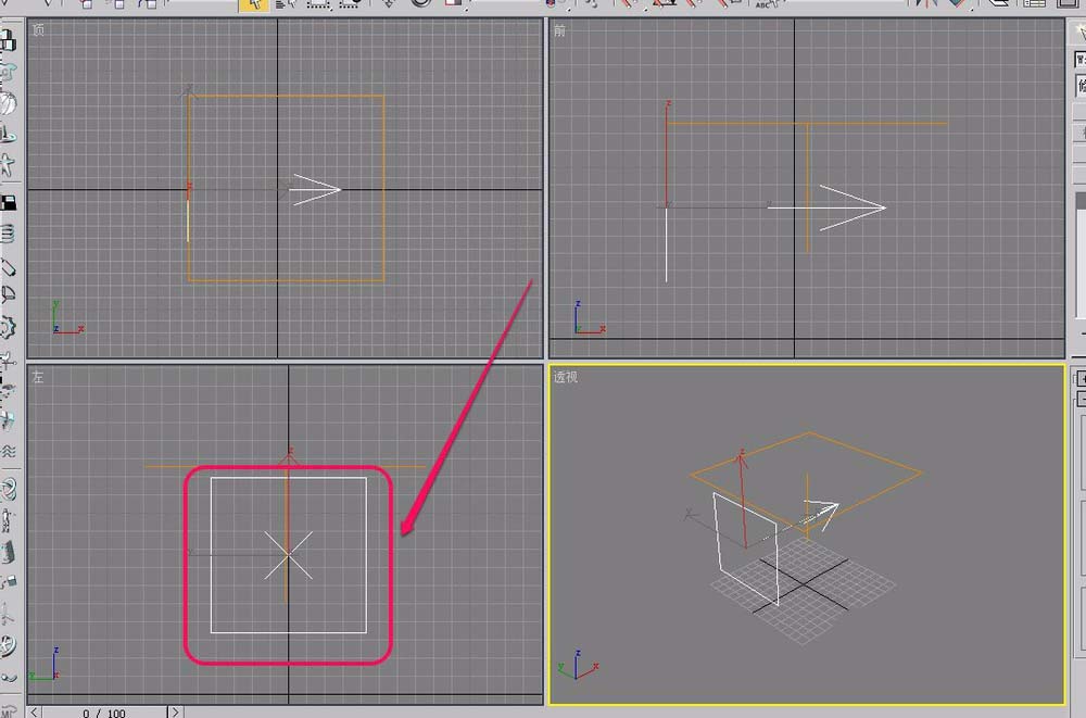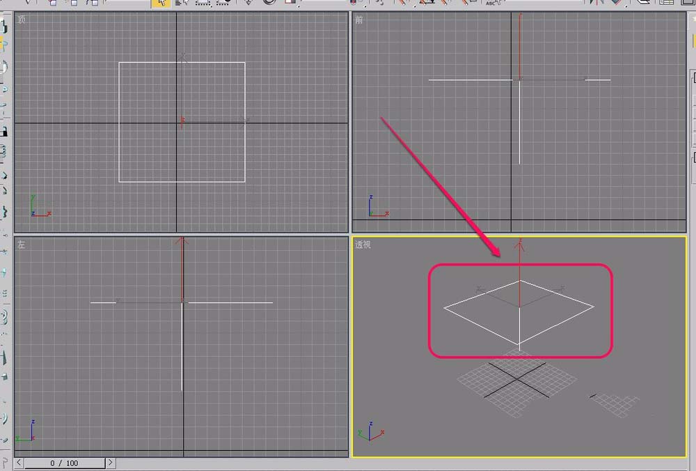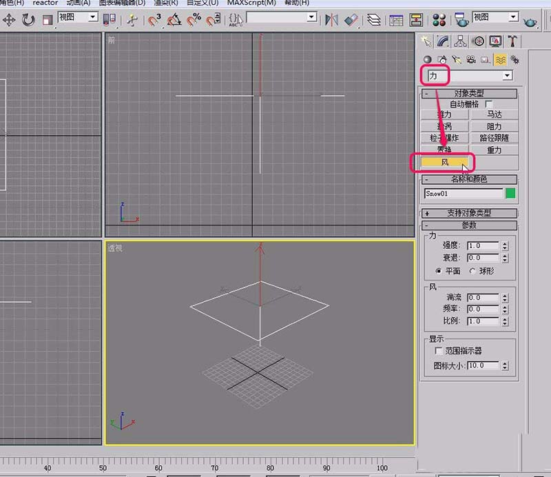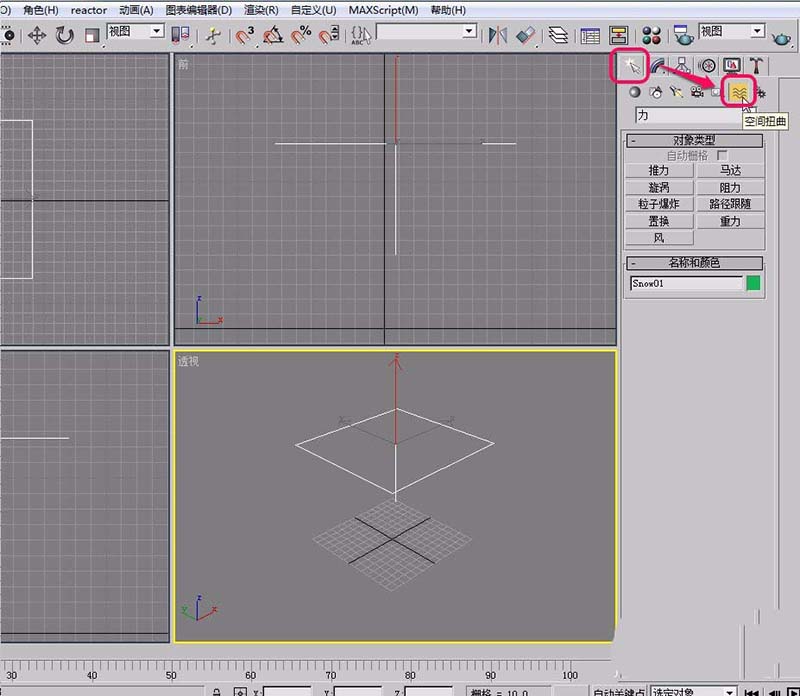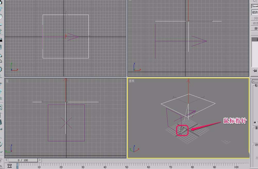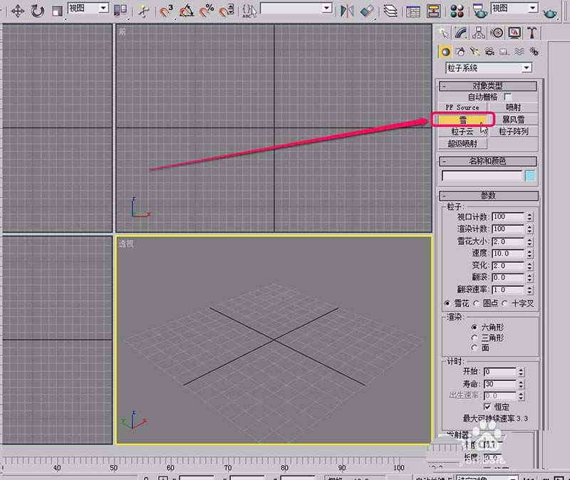 4、在視圖中用鼠標(biāo)繪制出“雪”生成器。