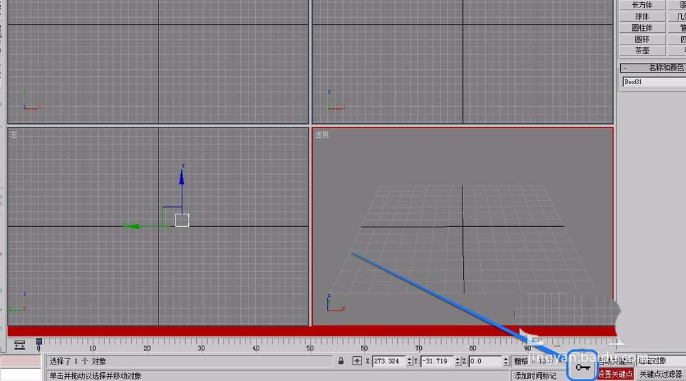 4、單擊“設置關鍵點”按鈕,這時,第一幀出現了一個關鍵幀標記。