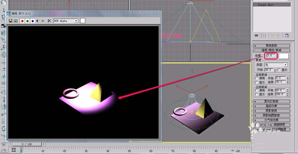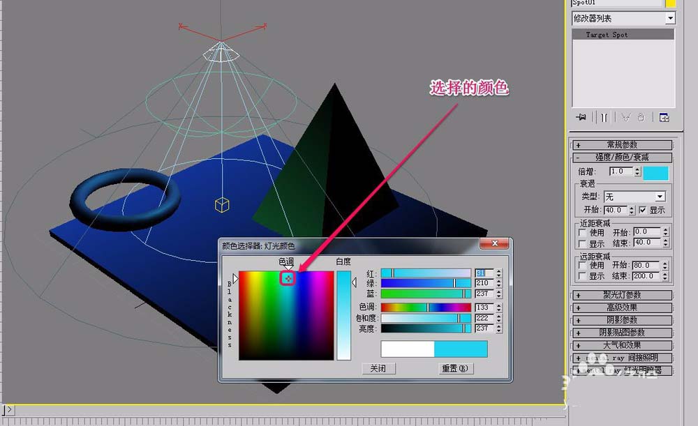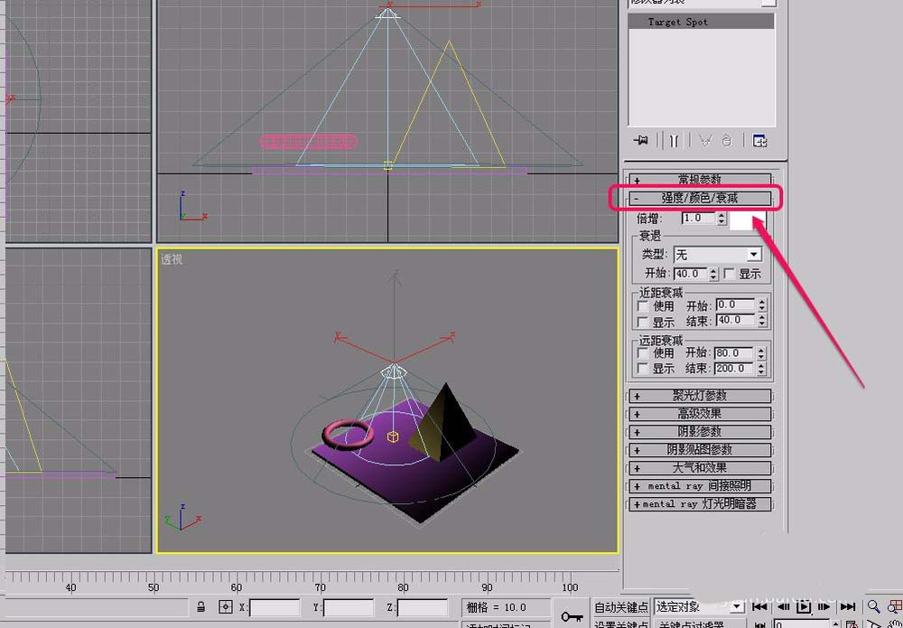 3dsmax中目標(biāo)聚光燈想要設(shè)置燈光照射的強(qiáng)弱、顏色和衰減,該怎么設(shè)置呢?下面我們就來看看詳細(xì)的教程。