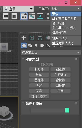 3、一般3ds Max剛打開以后的工作區是默認的,我們可以選擇其它的工作區,在右上角可以看到工作區的選擇,如圖