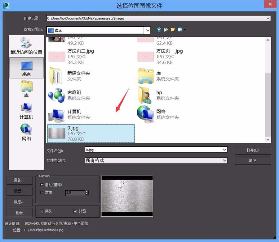 4、點擊這個選擇按鈕我們在彈出的對話框內找到貼圖選項,點擊貼圖在彈出的對話框內我們找到需要的金屬材質貼圖,如圖所示: