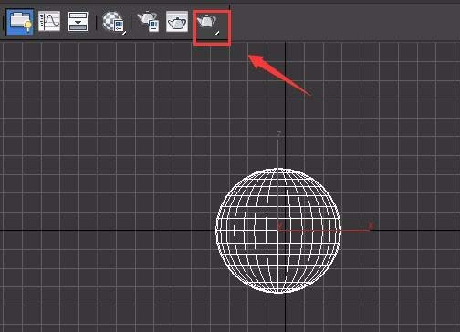 2、選擇球體在頂視圖里創建一個球體,然后在上面的菜單里找到添加材質選項,如圖所示: