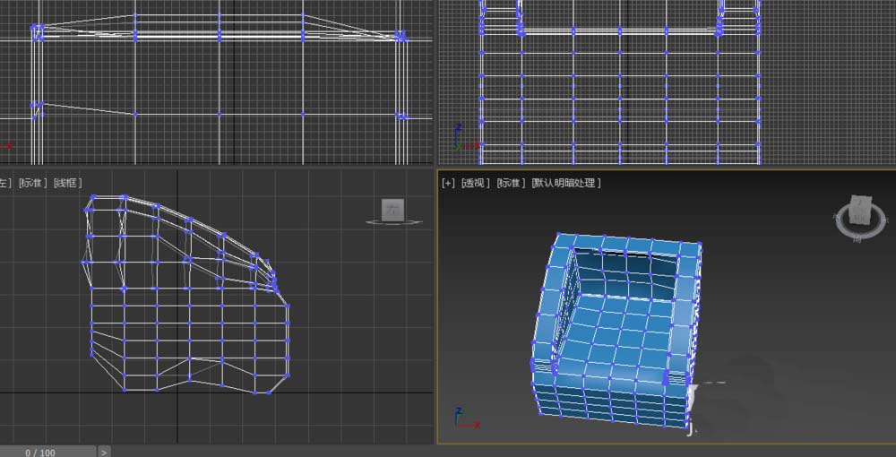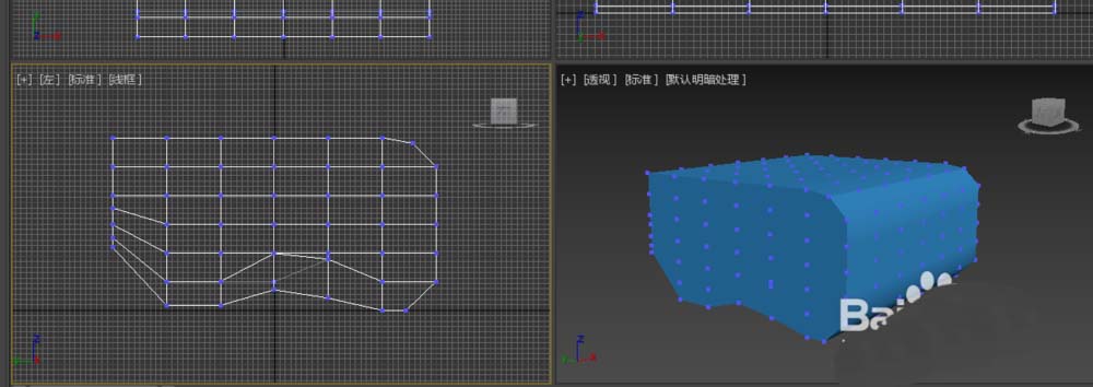 5、進入頂點層級,調整左視圖的頂點,改變其造型。這樣沙發就構建好了。