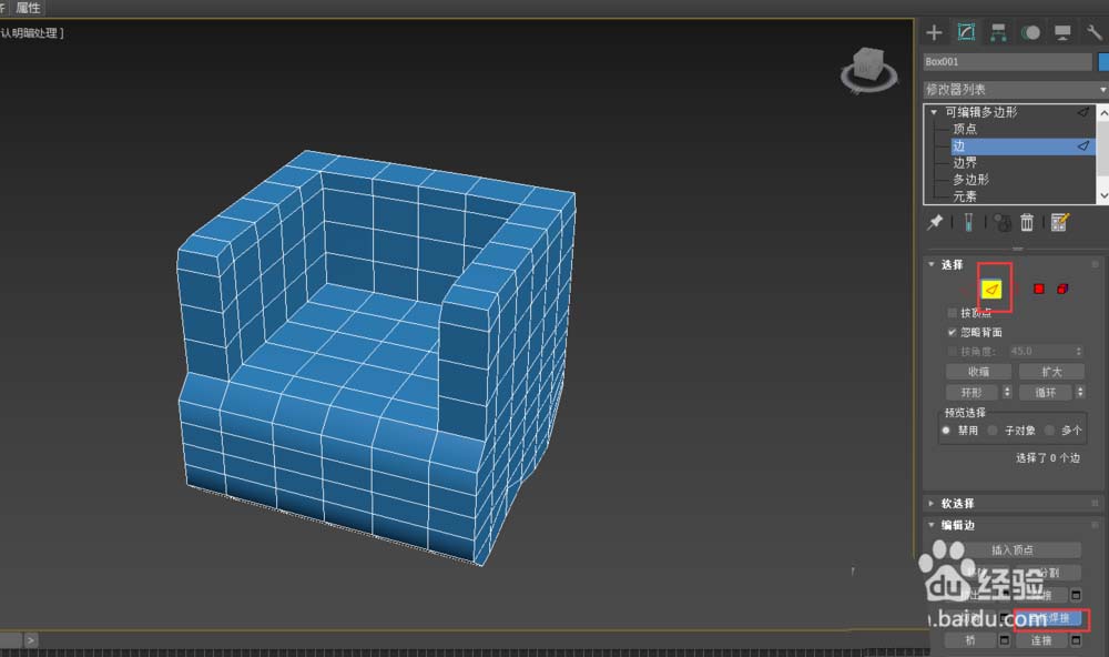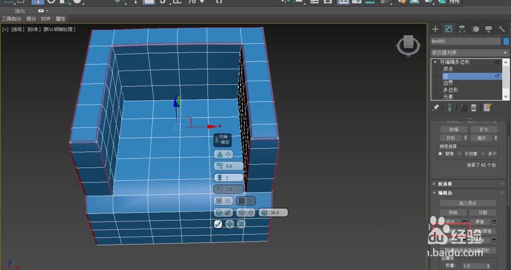 4、按住鍵盤的CTRL鍵,并配合選擇循環鍵,選擇需要倒角的邊,設置倒角量為5