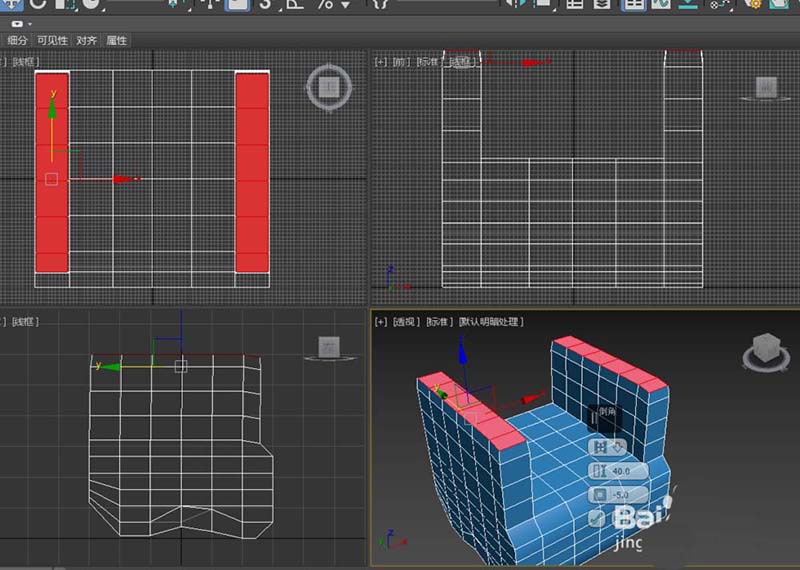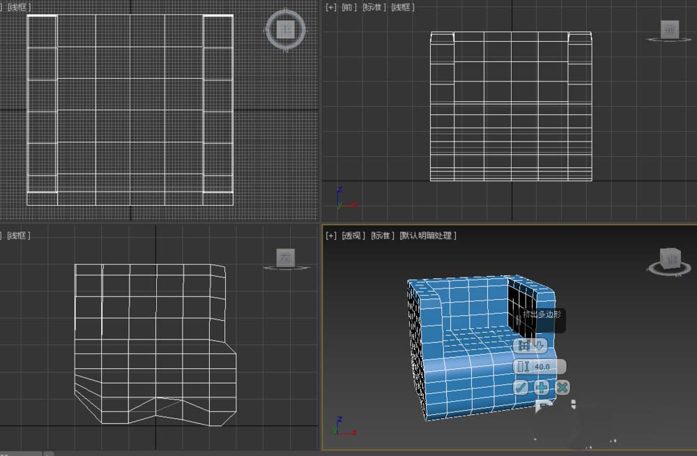 2、再次擠出,將擠出高度改為40,使靠背部分與兩側部分高度一致。