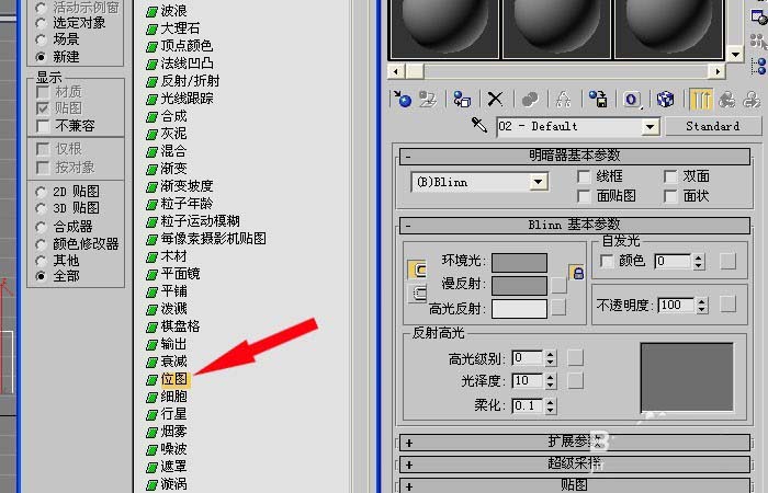 3、然后,在彈出的【漫反射】窗口上,鼠標(biāo)左鍵單擊【位圖】,如下圖所示。