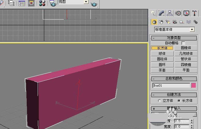1、打開3d max軟件,鼠標(biāo)左鍵單擊右邊面板的【幾何體】按鈕,選擇【長(zhǎng)方體】,在透視窗口中拖放出一個(gè)長(zhǎng)方體出來,如下圖所示。