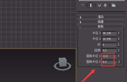 4、選擇星形我們在頂視圖里繪制一個星形,然后在修改里設置參數如圖所示: