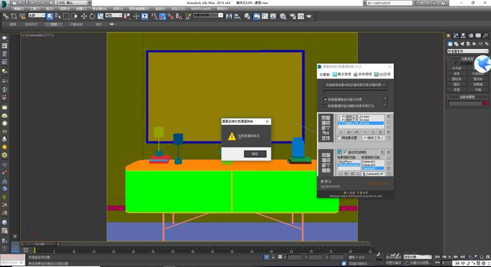 5、選擇“開(kāi)始轉(zhuǎn)換場(chǎng)景中的多維材質(zhì)及非多為材質(zhì)”,場(chǎng)景通道轉(zhuǎn)換完成,選擇確定