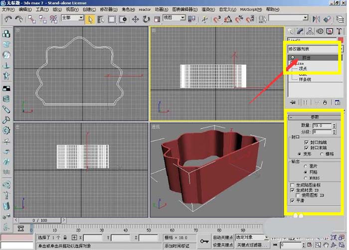 6、在修改器列表中單擊網格平滑,設置好參數。