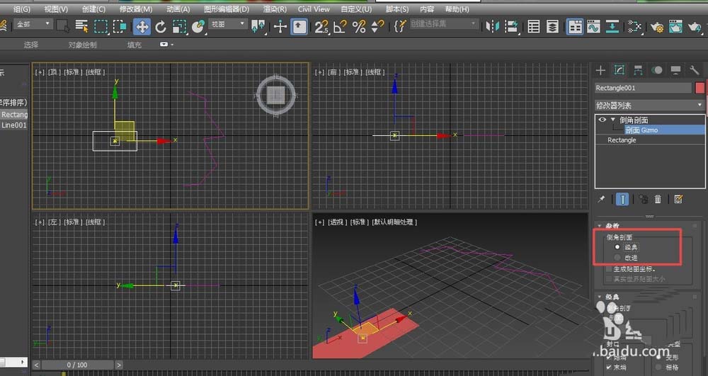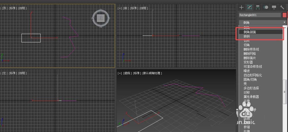 2、選取矩形路徑后,在修改面板下的修改器列表中找到倒角剖面,并選擇倒角剖面。