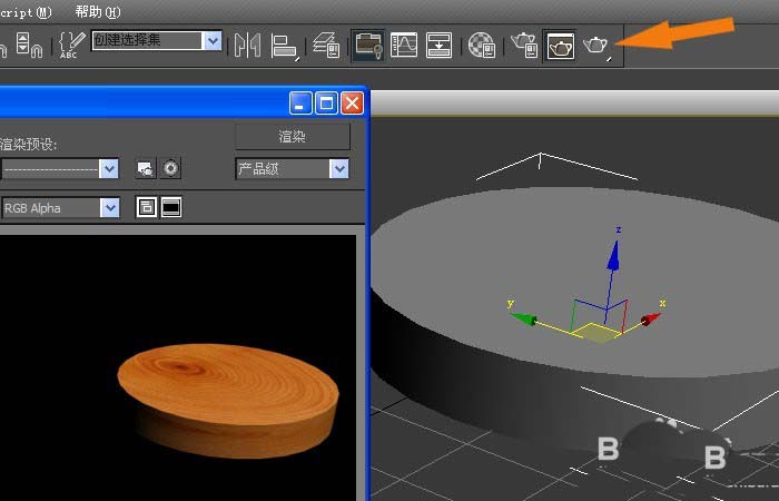8、單擊【渲染】按鈕,可看到渲染的顯示效果。接著,在透視圖上的立體圓形沒有出現木紋圖,單擊【渲染】按鈕,可看到渲染的顯示效果,一個漂亮的案板就做好了,如下圖所示。
