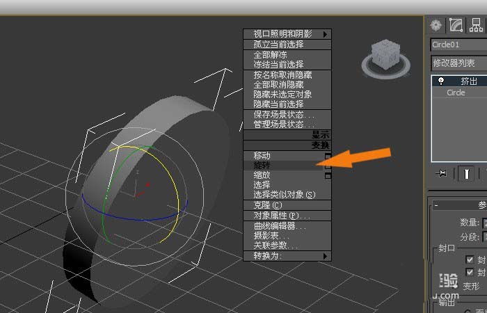 9、通過旋轉方式,把立體圓形立起來,擺正。然后,選擇立體圓形,右鍵菜單選擇旋轉,通過旋轉方式,把立體圓形立起來,擺正,如下圖所示。