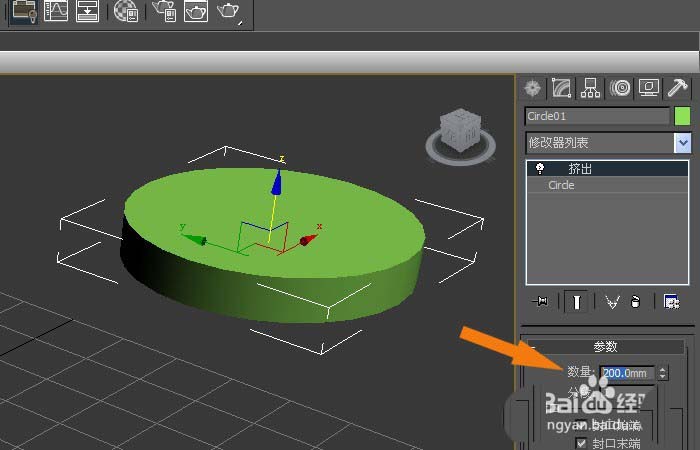 3、 在【擠出】的參數面板上,輸入擠出的數量。然后,在【擠出】的參數面板上,輸入擠出的數量,這樣就成為立體的圖形了,如下圖所示。