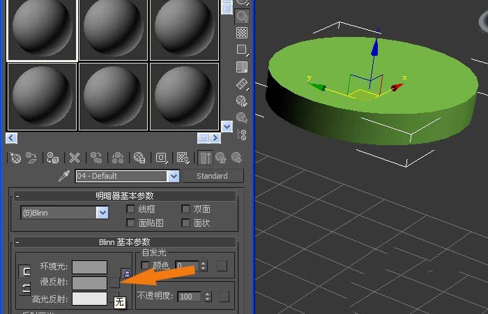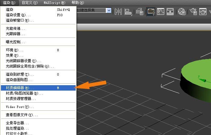 4、鼠標左鍵單擊菜單【渲染】|【材質編輯器】,給立體圓形添加材質。接著,鼠標左鍵單擊菜單【渲染】|【材質編輯器】,給立體圓形添加材質,如下圖所示。