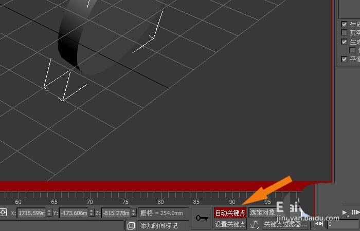 10、選擇【自動關鍵點】按鈕,準備制作一個小動畫。接著,鼠標左鍵在底部的動畫區域中,選擇【自動關鍵點】按鈕,準備制作一個小動畫,如下圖所示。