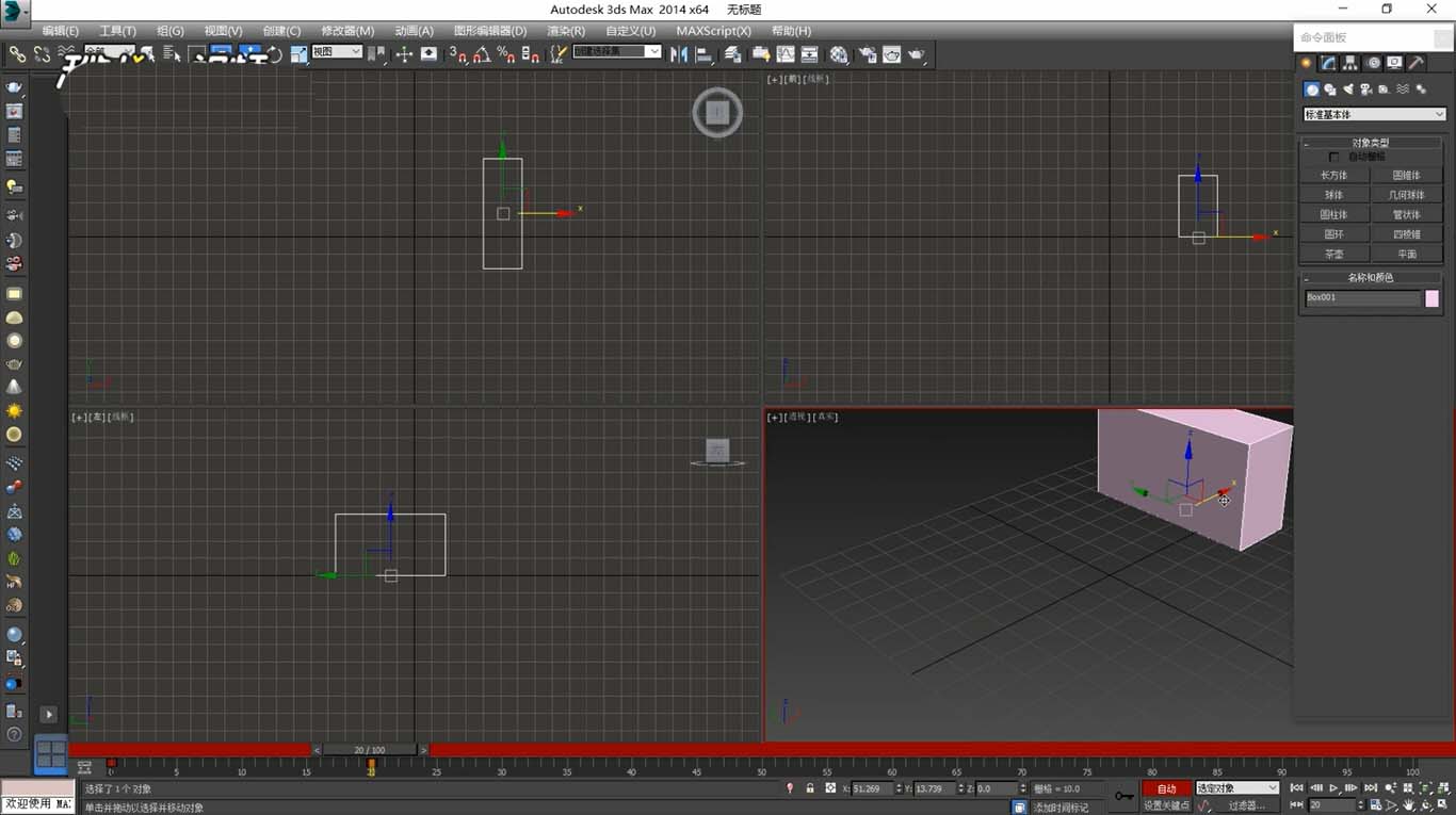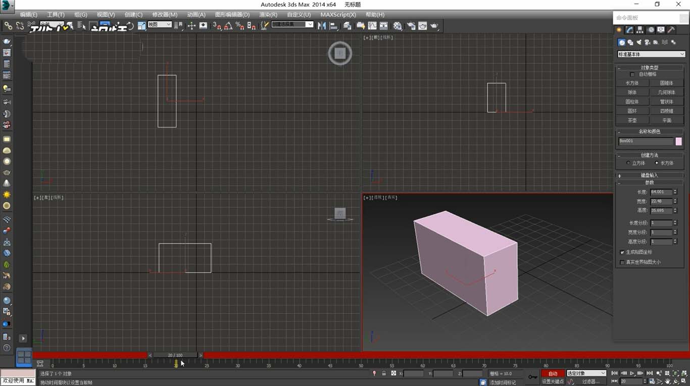 1、首先,我們打開軟件,選擇一個視圖,點擊長方體,在視圖上創(chuàng)建一個長方體。