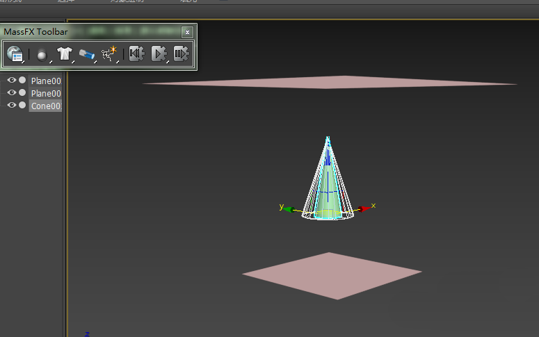 3、當點擊模擬時,發現圓錐體停留在圓環中而不落下,這是因為物理網格的緣故。