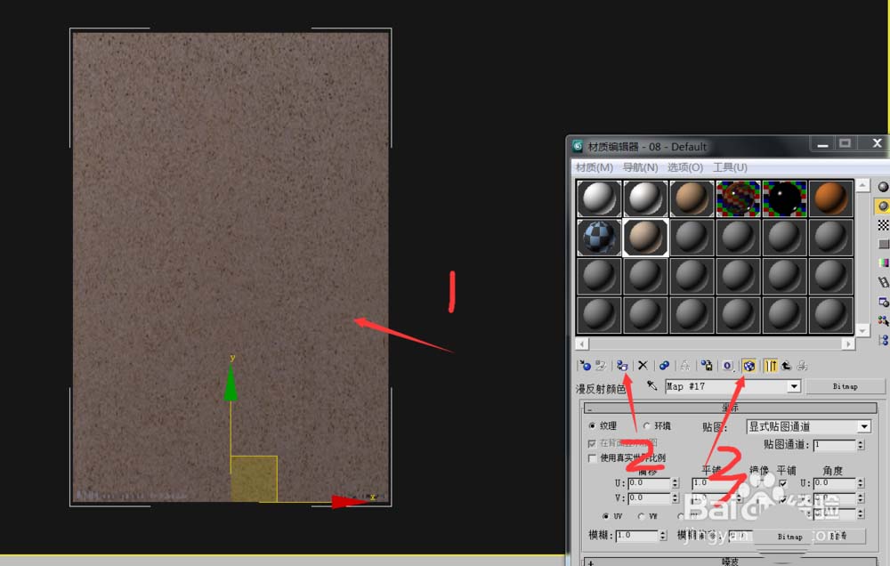8、然后選擇物體,點(diǎn)擊附加按鈕和顯示按鈕,這樣圖片就貼到物體上面了