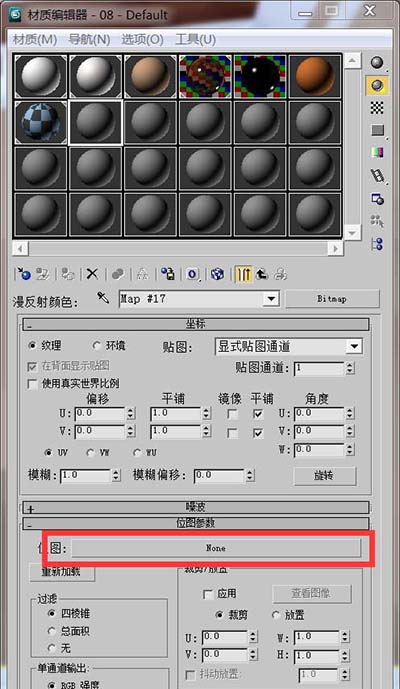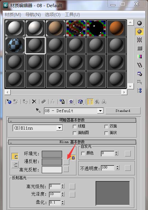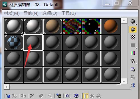 2、這里有很多材質(zhì)球,選擇一個(gè)沒(méi)有貼圖的材質(zhì)球