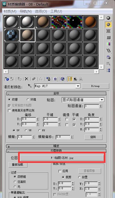 3、在下面編輯材質(zhì)球的漫反射貼圖,點(diǎn)擊這后面的小方點(diǎn)