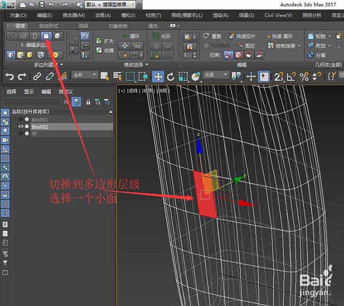 2、首先,確保模型是可編輯多邊形,切換到多邊形層級,選擇一個小面元。