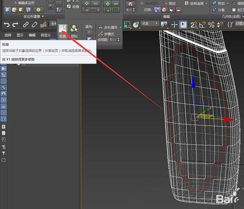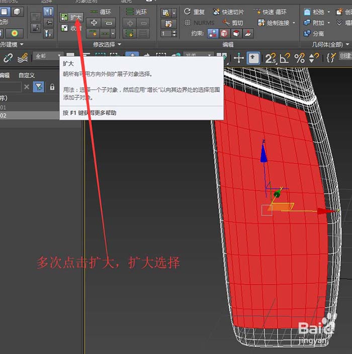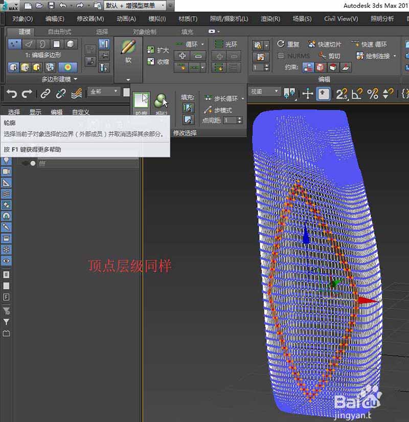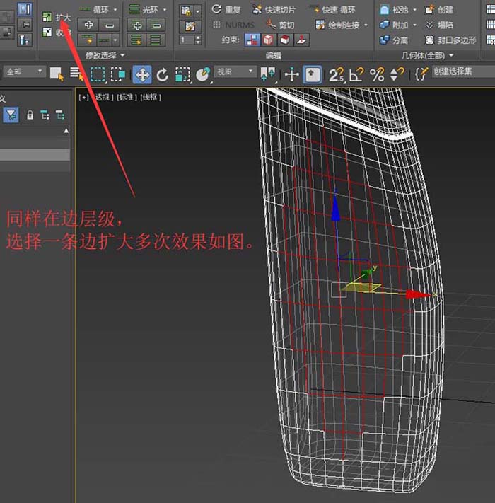 5、對于邊層級和頂點層級的操作完全類似,擴大/收縮/輪廓均有效且用法一致。
