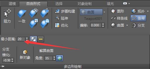 6、展開多邊形繪制面板,修改最小距離數值,再次繪制,我們看到新繪制的條帶變寬了。