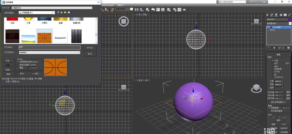 注意:一定要先打開材質編輯器,通過位圖方式導入籃球材質圖片