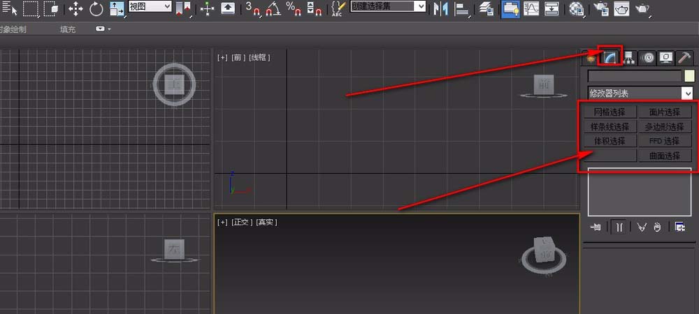 3、右邊框中的就是一部分的修改命令,這里顯示的是黑色是因為沒有可供選擇修改的模型。