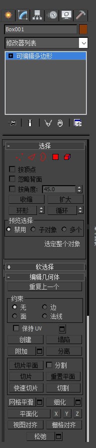 4、在可編輯多邊形中按下2鍵,進(jìn)入(邊)子對象層級