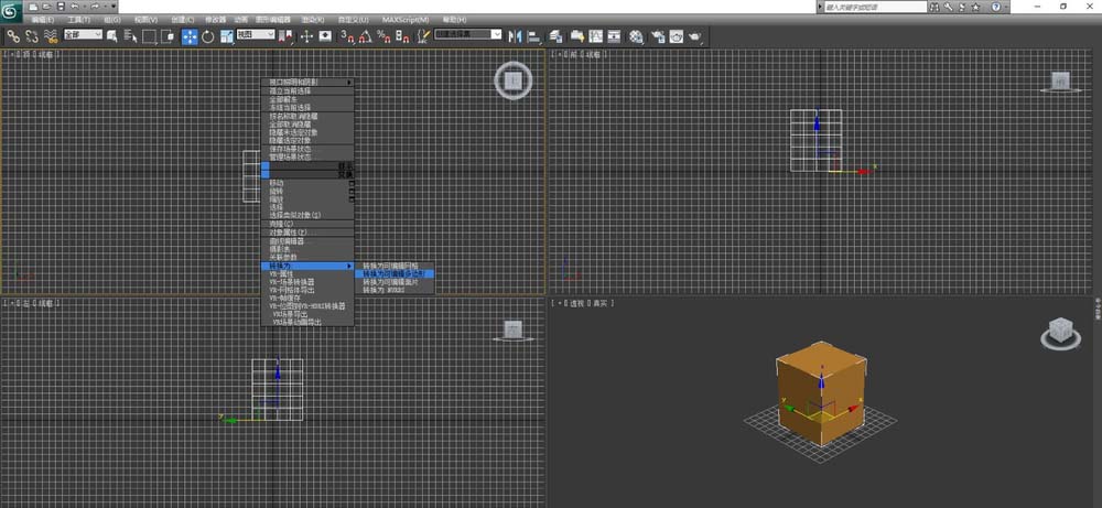 3、選中長方體,將長方體轉(zhuǎn)換為【可編輯多變形】,按下1鍵,進(jìn)入頂點子對象層級,使用【移動】工具進(jìn)行調(diào)整