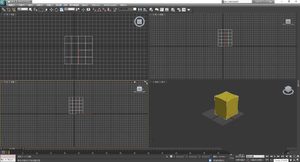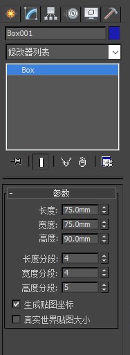 2、在頂視圖中創(chuàng)建一個長方體,設(shè)置長方體的參數(shù),長度為75毫米,寬度為75毫米,高度為90毫米,長度分段為4,寬度分段為4,高度分段為5