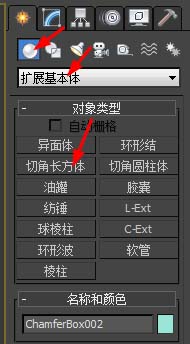 1、在創建面板-擴展基本體下選擇切角長方體