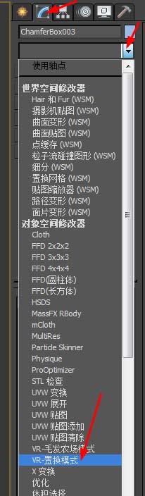 9、再次在修改面板,添加VR-置換模式修改器