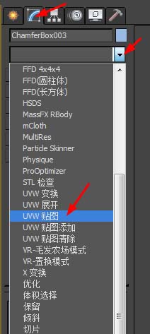 7、在修改面板添加uvw貼圖修改器